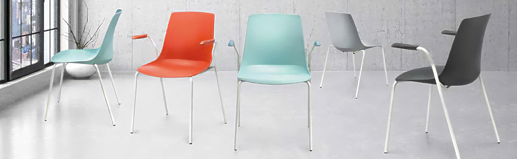 Silla fácilmente apilable.
