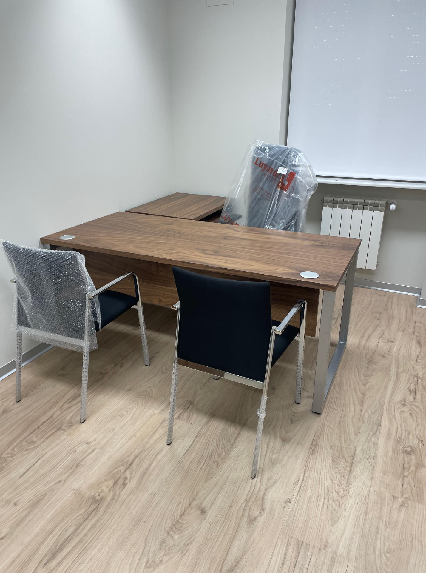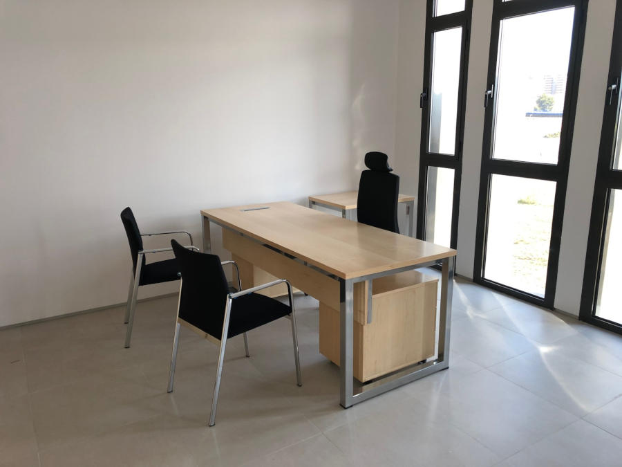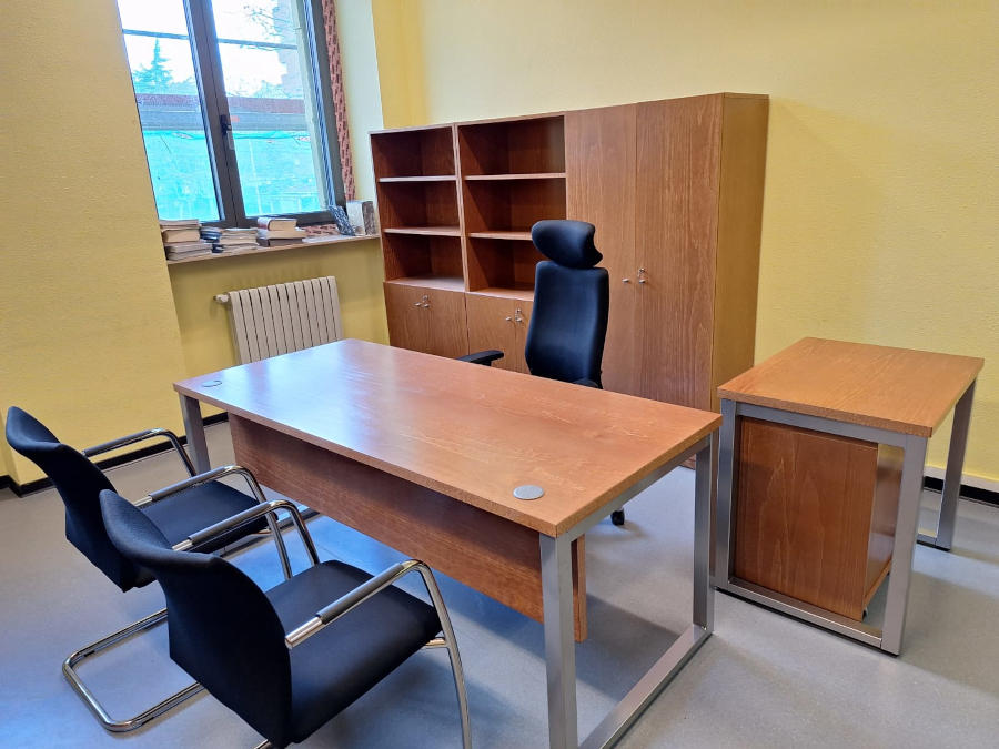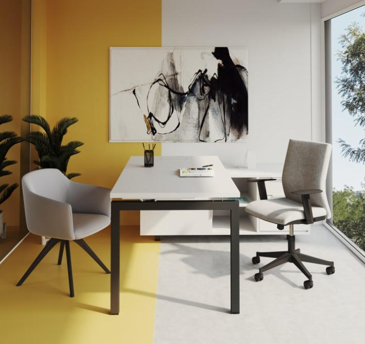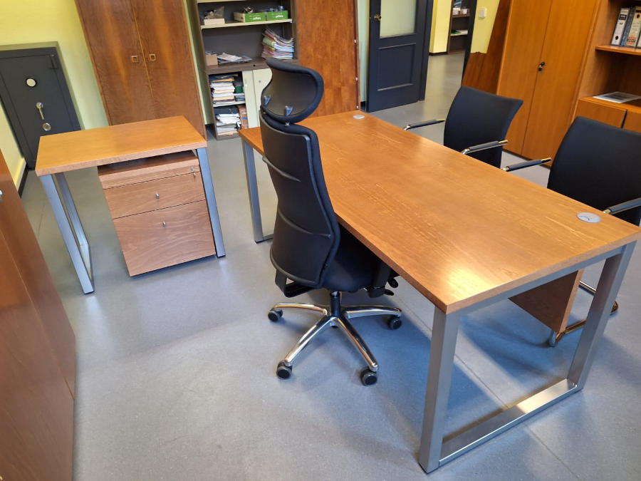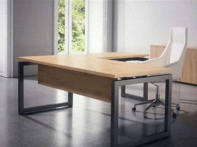 Mesa compuesta de tapa y costados barnizado-fabricados en tablero MDF rechapado en madera natural de varios grosores, cantos perfilados en todo su perímetro en cuanto a la tapa y costados chapados incluso cantos ocultos.